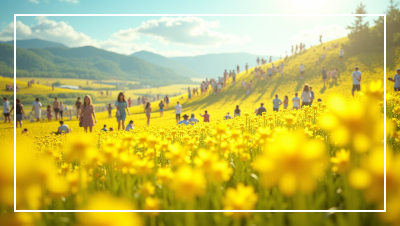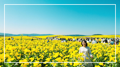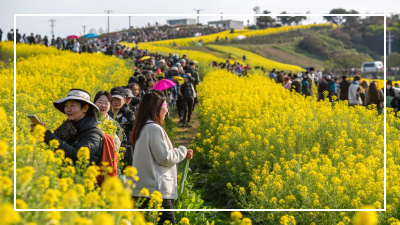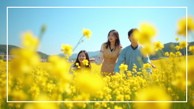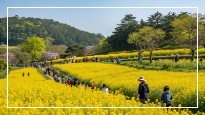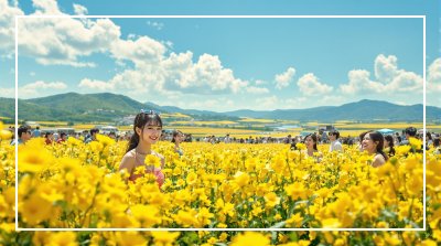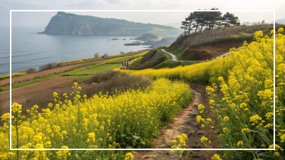 - 유채꽃밭 전망대: 노란 꽃 바다를 배경으로 한 파노라마 샷