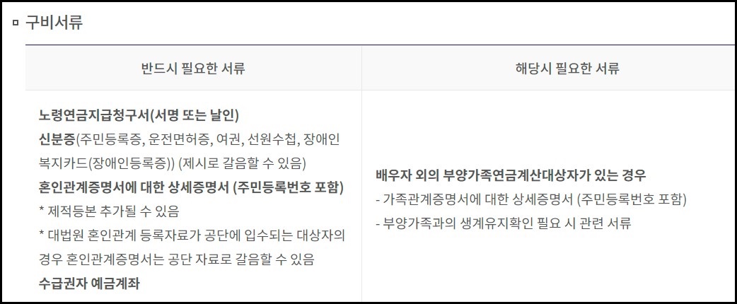 - 가족관계증명서 1부(부양가족연금 대상자가 있는 경우)