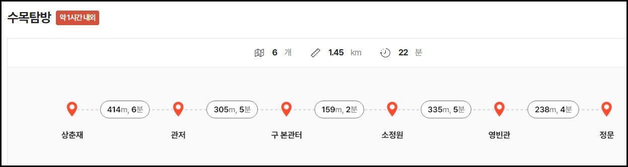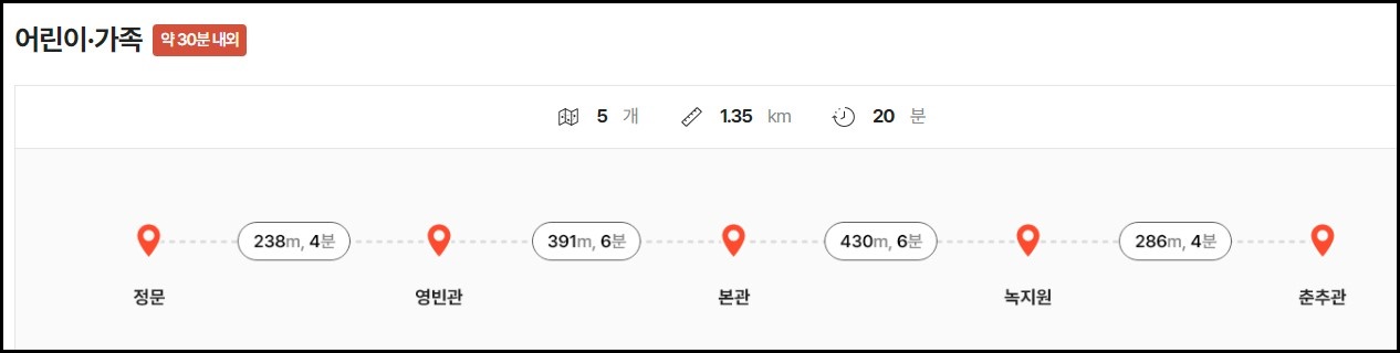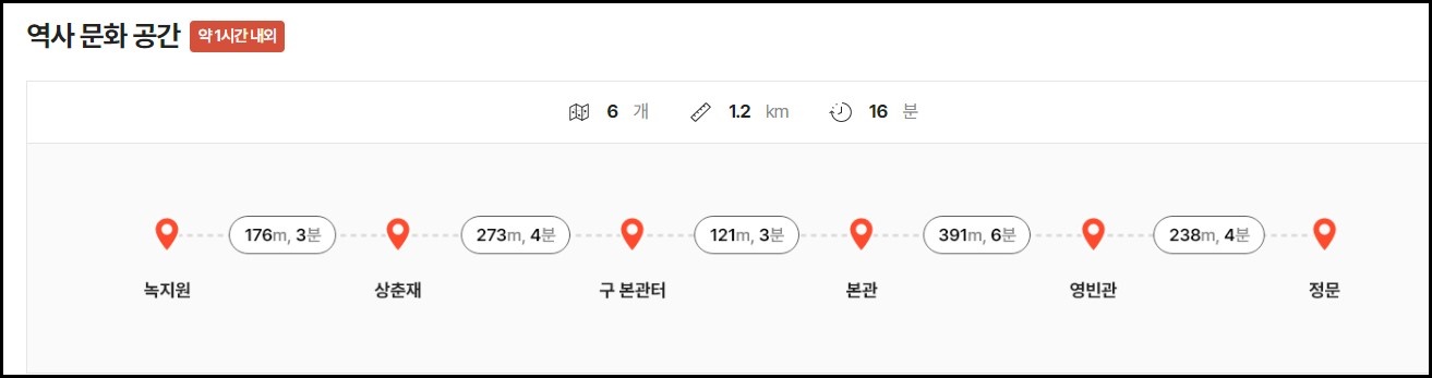 - 동선: 녹지원 → 상춘재 → 구 본관 터 → 본관 → 영빈관 → 정문