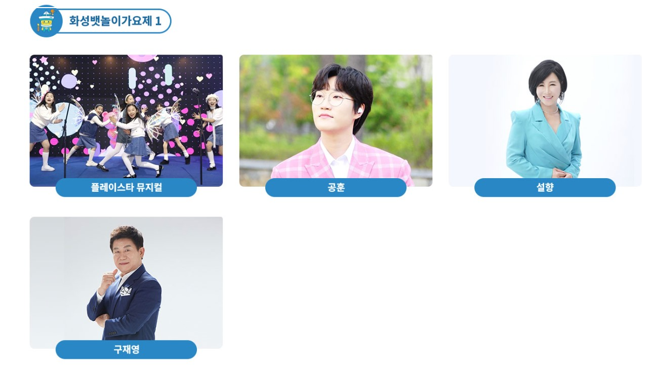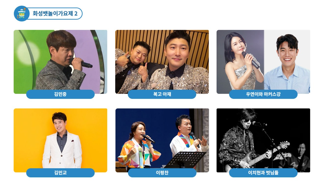 - 강자민: 신예 가수로 화성 뱃놀이 축제를 더욱 빛낼 것