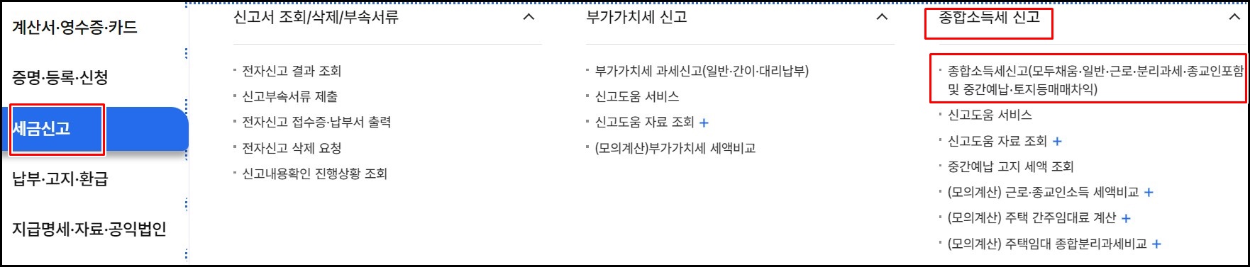 로그인 후, 상단 메뉴에서 '신고/납부'를 선택한 후 '종합소득세 신고' 메뉴를 클릭합니다. 여기서 '신고서 작성'을 선택하여 신고서를 작성할 수 있는 페이지로 이동합니다.